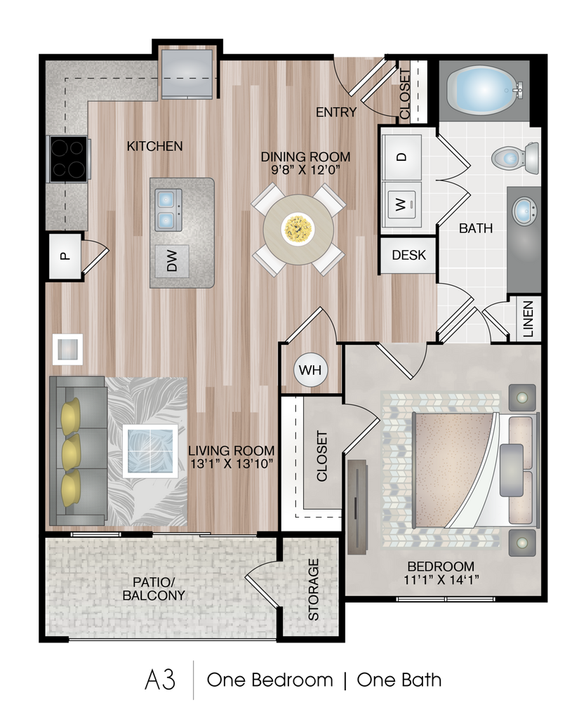 Apartment Model: A3 80From $1,5141 Bedroom, 1 Bath, 749 sq ftAvailable NowFloor plans are artist's rendering. All dimensions are approximate. Actual product and specifications may vary in dimension or detail. Not all features are available in every rental home. Prices and availability are subject to change. Base rent is based on monthly frequency. Additional fees may apply, such as but not limited to package delivery, trash, water, amenities, etc. Deposits vary. Please see a representative for details.