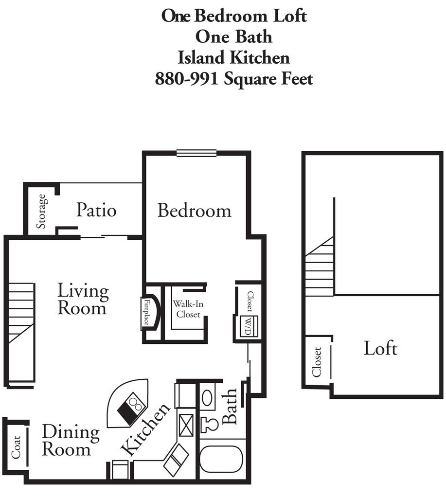1 Bedroom + Loft - Floorplan 1 2 Bedrooms