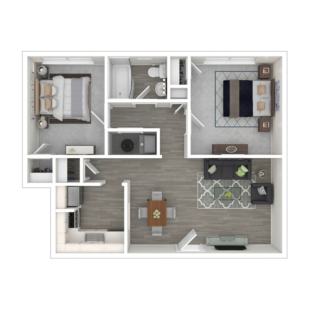 2 Beds, 1 Bath, 735 sq ftAvailable NowModel Gallery