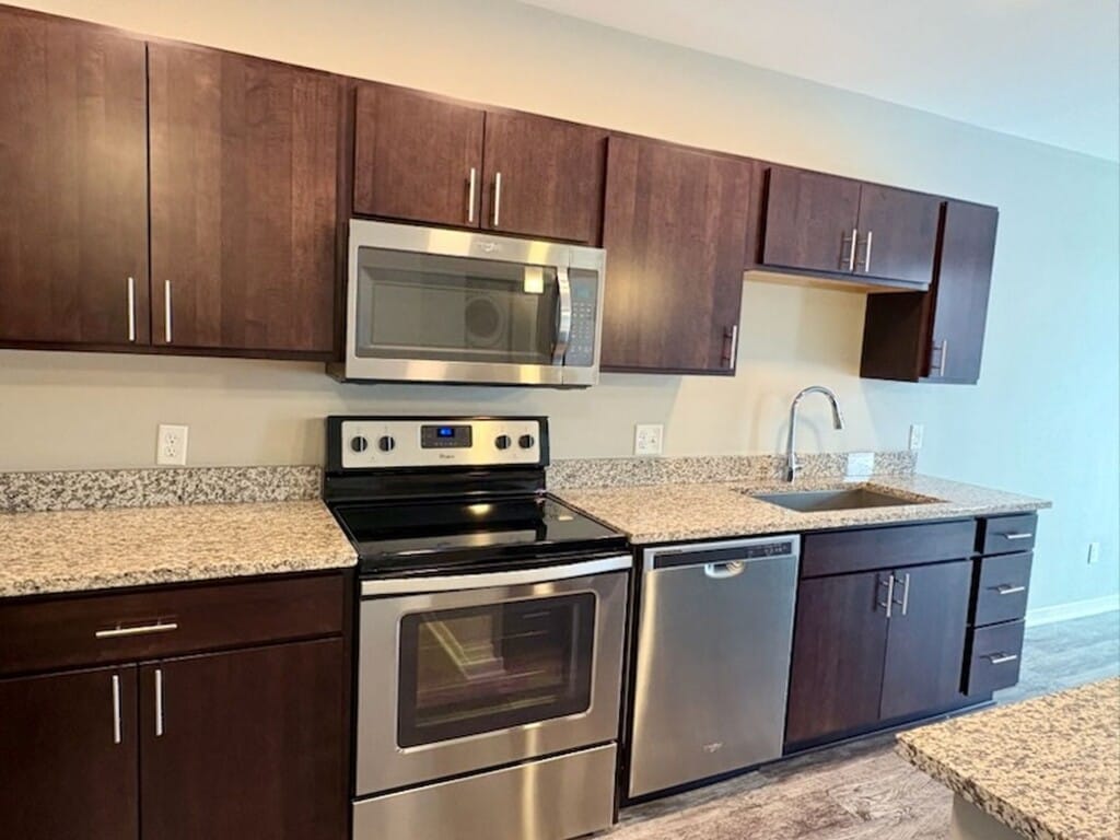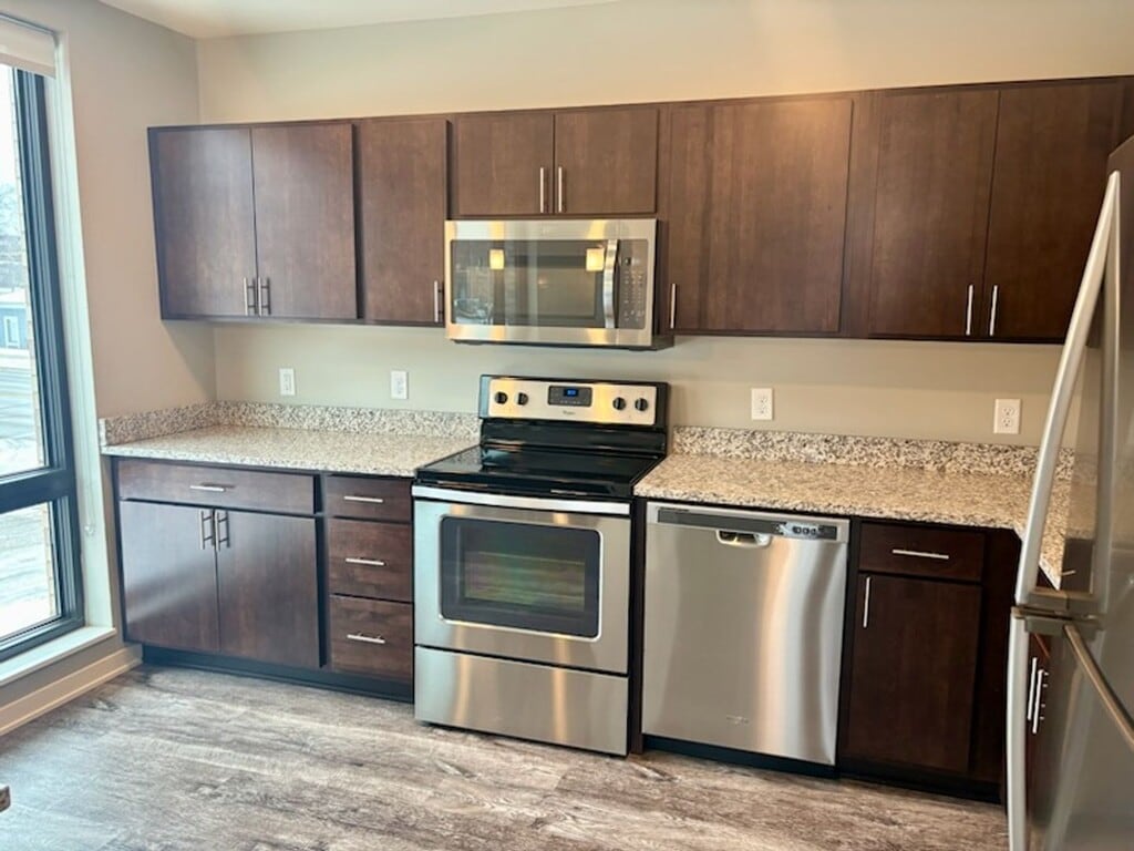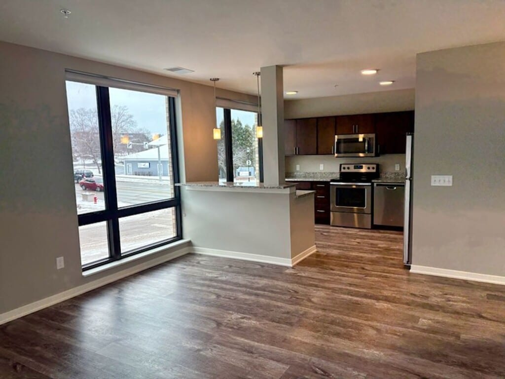 Here at High Pointe Sheboygan, we’ve spared no cost to create an apartment you can call home! Enjoy high-end interior finishes and amenities including; stainless steel appliances, wood cabinets, granite counters, in-unit washer and dryer, and even upgraded acoustic floors and walls. You’ll notice the difference before you even step foot into your apartment. A stunning community room features a cozy fireplace, gathering area, outdoor space and kitchen perfect for entertaining. Our well appointed fitness center is perfect for your morning workout routine. Spend your nights and weekends relaxing on the rooftop deck, soaking in the sun and the Lake Michigan/Sheboygan River views. This is the place you’ve been searching for!