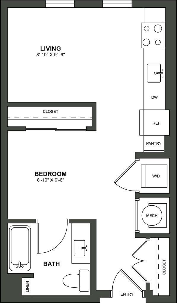 Studio, 1 Bath, 496-504 sq ftAvailable NowCheapest StudioThis is the cheapest Studio at this PropertyModel Gallery