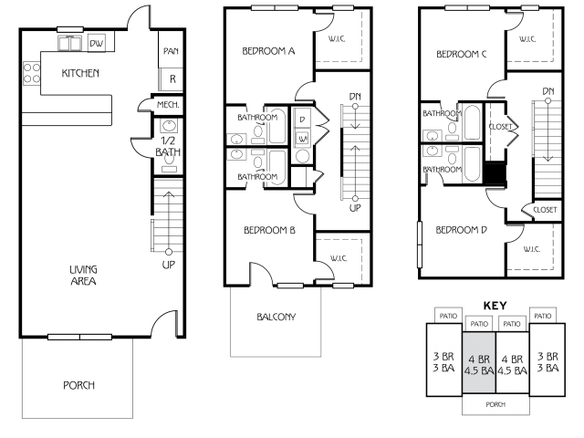 Apartment Model: Lumpkin B Unfurnished - 4Br, 4.5Ba$9994 Bedroom, 4.5 Bath, 583 sq ftAvailable Now![]()