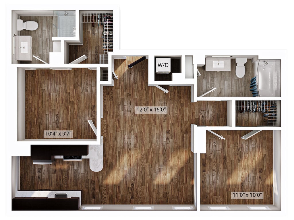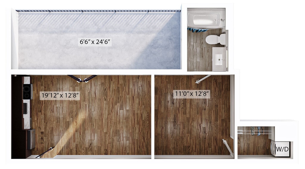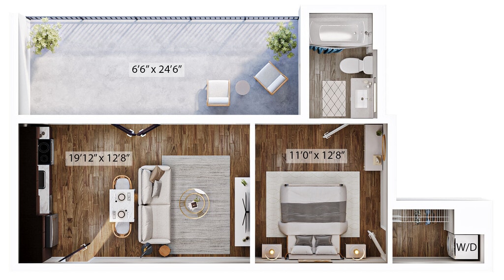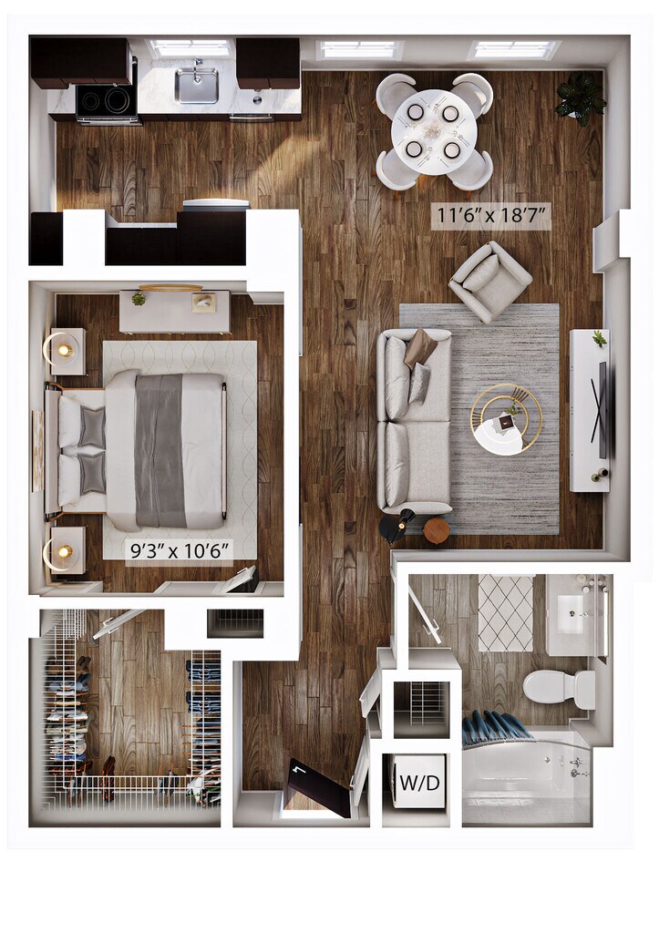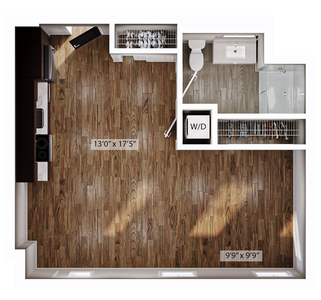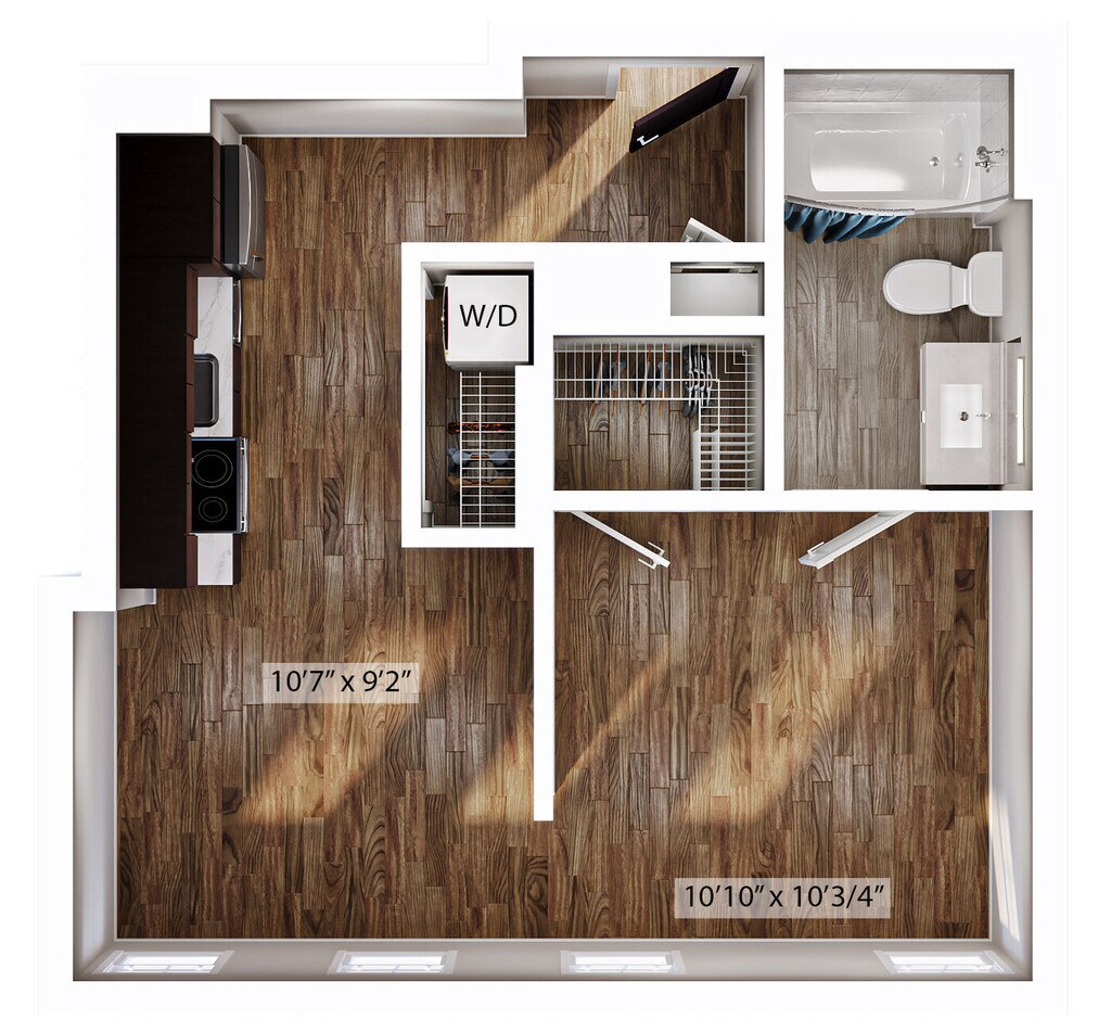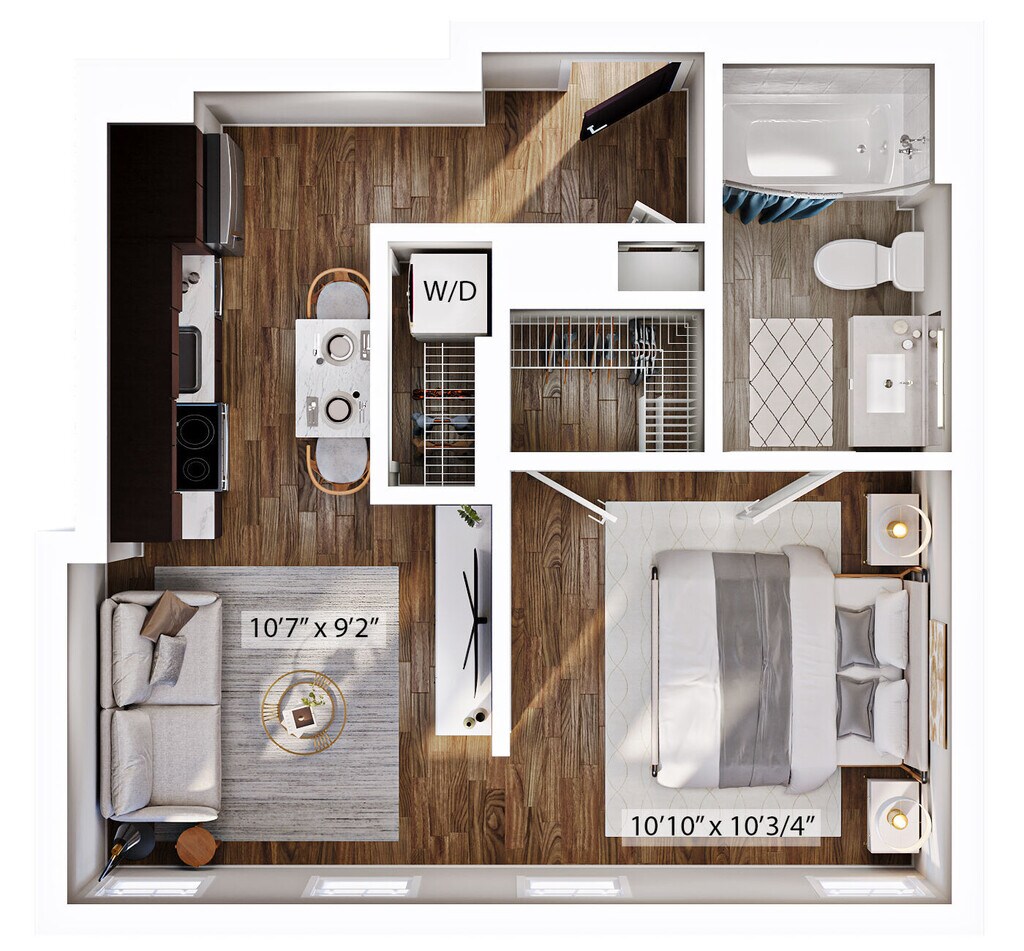 Studio, 1 Bath, 543 sq ftAvailable January 6, 2026Largest StudioThis is the largest Studio at this PropertyModel Gallery