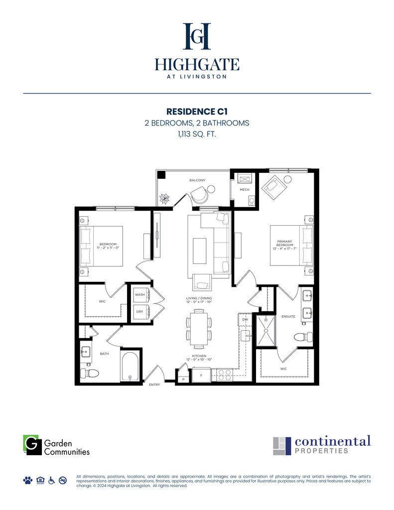 Apartment Model: $3.71/sq.ft. - Residence C1From $4,1752 Bedroom, 2 Bath, 1113 sq ftAvailable Now![]()