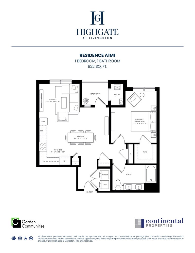 1 Bed, 1 Bath, 822 sq ftModel Gallery
