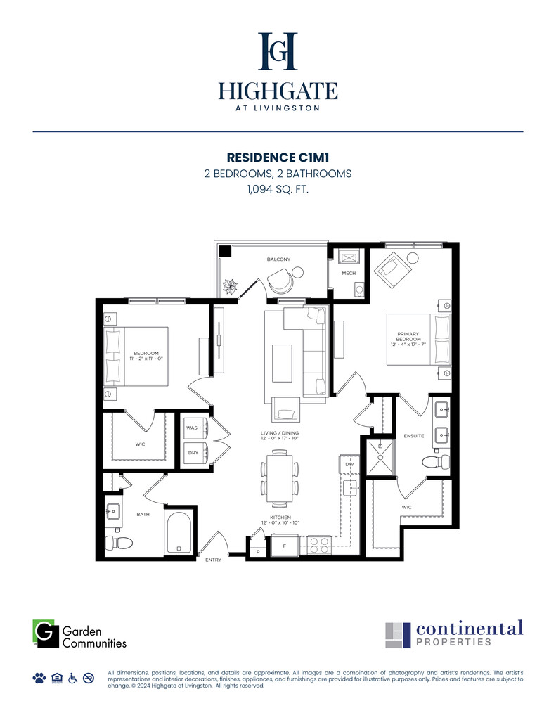 Apartment Model: $3.68/sq.ft. - Residence C1M1From $4,0252 Bedroom, 2 Bath, 1094 sq ftUnavailable![]()