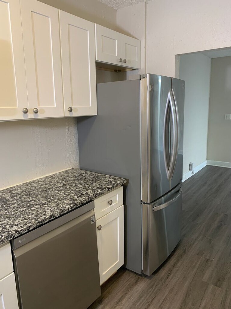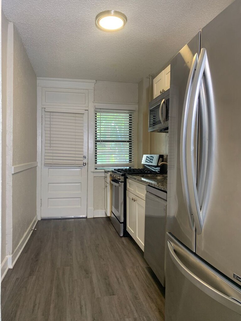 Great location close to KCAI, UMKC, Plaza, and Westport - one block from the new rail car route! Super cute one bedroom gives the perfect combination of modern updates and vintage charm. This turn of the century three story building now has this remodeled 1BR with washer/dryer in unit available. This second floor apartment features plank flooring, updated cabinets/counters, fully equipped stainless kitchen including gas range, dishwasher and microwave, along with tons of natural light. This one bedroom features two areas great for bedroom and office space or seating area, walk in closet with built in shelving, and now features in unit laundry. Highland includes keyless secured building access, private rear entry, pre-wired for Google Fiber, and concierge trash pick up.