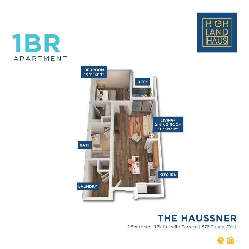 Apartment Model: Haussner$1,6051 Bedroom, 1 Bath, 578 sq ftUnavailable![]()