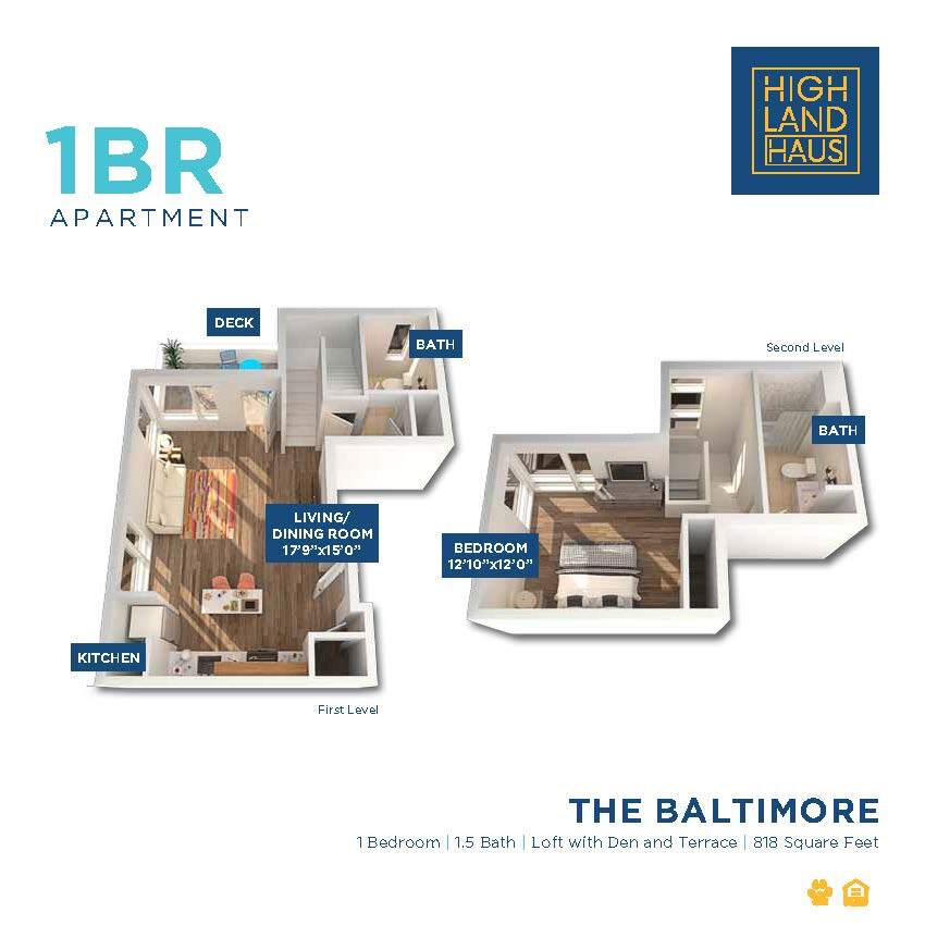 Baltimore - Floorplan 1 Apartment Unit: 510Apartment Model: Baltimore$1,9481 Bedroom, 1.5 Bath, 818 sq ftAvailable SoonDomino