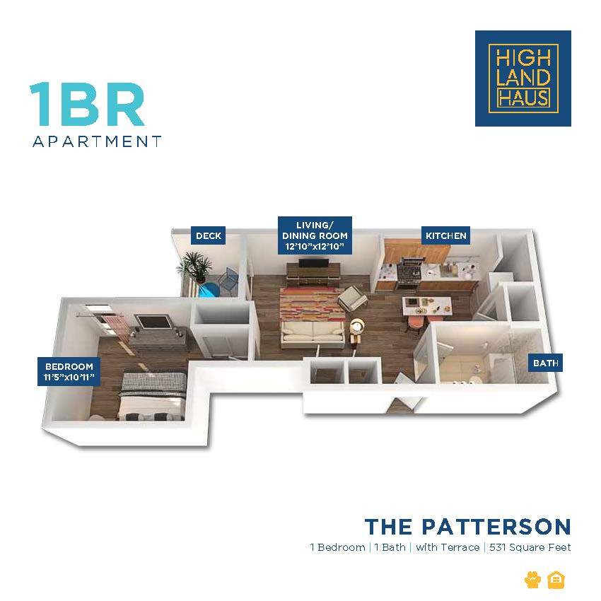 Apartment Model: Patterson$1,7001 Bedroom, 1 Bath, 531 sq ftUnavailable![]()