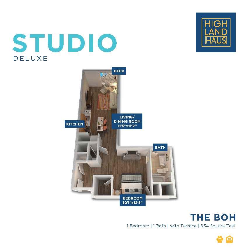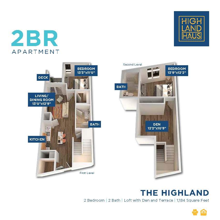 Studio to 2 Bedroom Apartments at Highland Haus currently range from $1,730 to $1,994