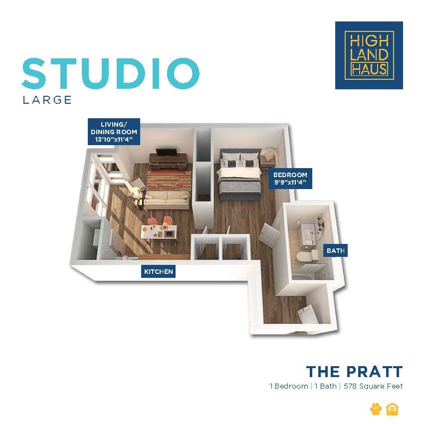 Apartment Model: Pratt$1,610Studio, 1 Bath, 578 sq ftUnavailable![]()