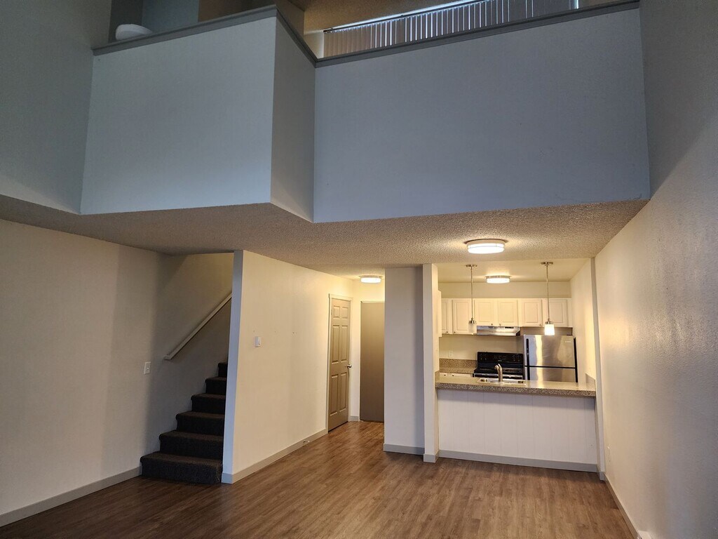 Spacious loft style one bedroom, High ceilings, W/D in unit. Best location. walk to shops and restaurants. cat and dogs welcome. Vinyl plank flooring , Fireplace. Pool, Gym.