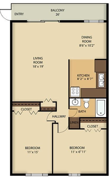 2 Beds, 1 Bath, 1100 sq ftAvailability Details
