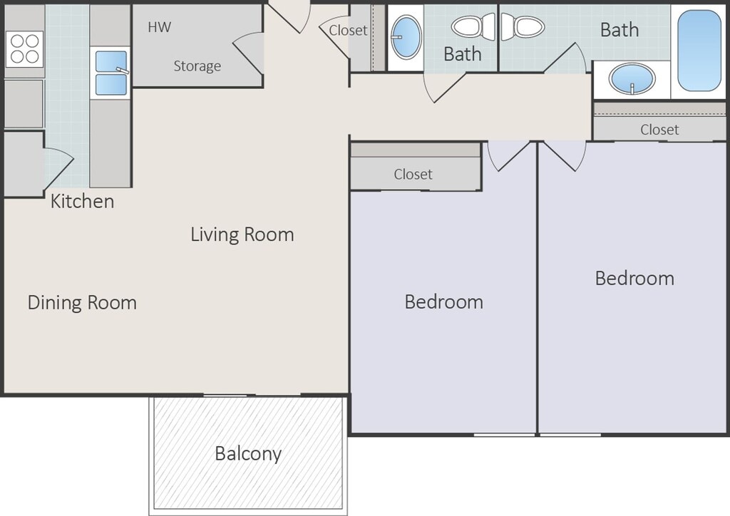 BALCONY VIEW - 2 Bed 1.5 Bath Apartment - Breez... - Floorplan 8