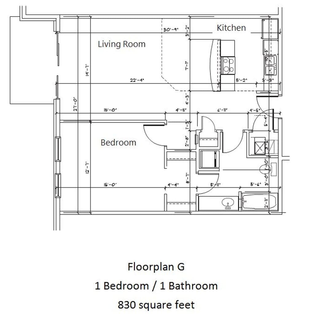 Floorplan G - Floorplan 5 Apartment Unit: 222Apartment Model: Floorplan G$1,5201 Bedroom, 1 Bath, 830 sq ftAvailable November 7, 20252 Bedrooms