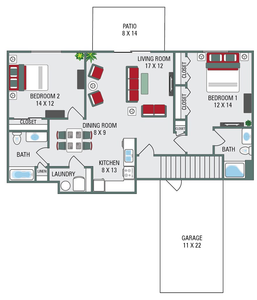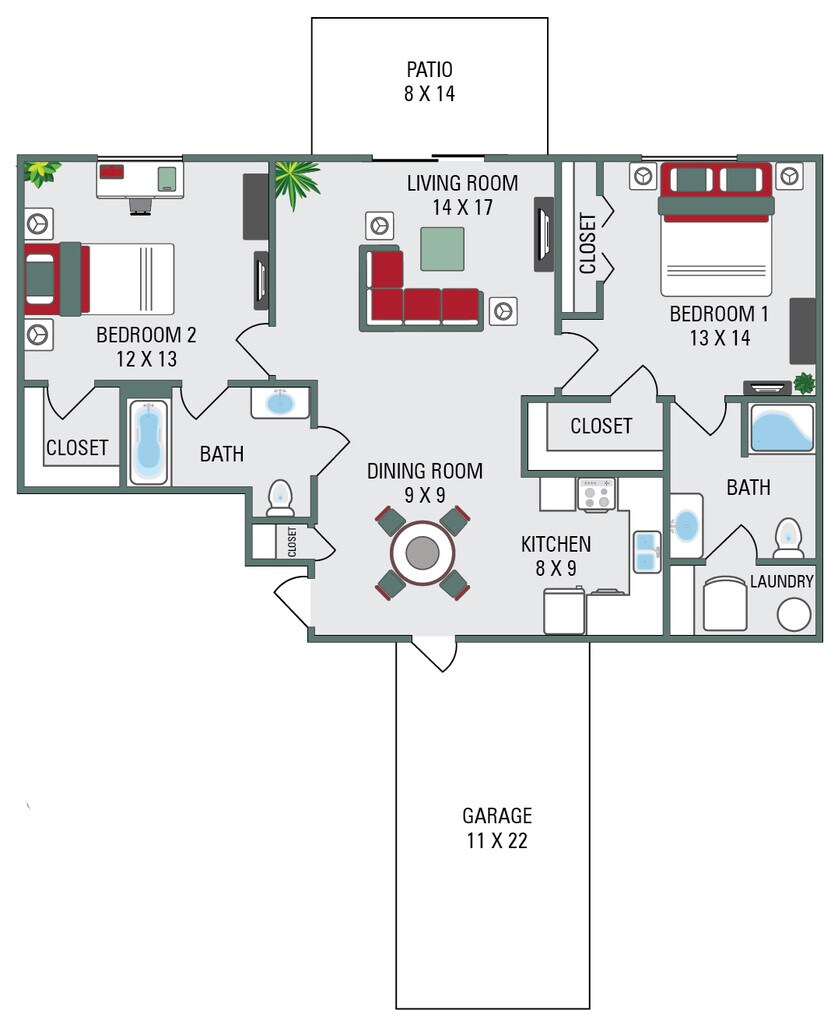 2 Beds, 2 Baths, 1375 sq ftAvailable Nov 15Largest 2 BedroomThis is the largest 2 Bedroom at this PropertyModel Gallery