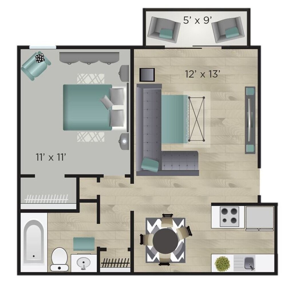 1 Bed, 1 Bath, 586 sq ftPlus FeesAvailable NowModel Gallery