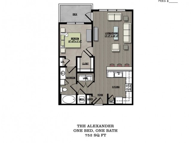 The Alexander - Floorplan 1 Apartment Unit: 2000-2402Apartment Model: The AlexanderFrom $1,8411 Bedroom, 1 Bath, 752 sq ftAvailable December 9, 2025Apartment Unit: 4000-4321Apartment Model: The AlexanderFrom $1,8201 Bedroom, 1 Bath, 752 sq ftAvailable December 10, 20252 Bedrooms