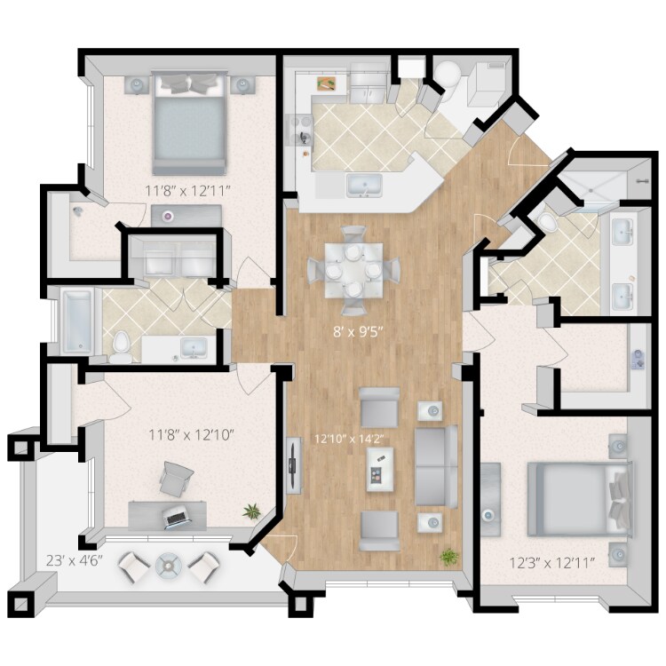 2 Beds, 2 Baths, 1229 sq ftAvailable NowModel Gallery