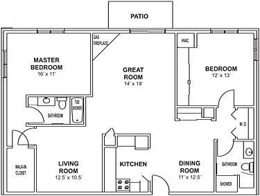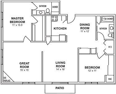 F3 - 2 Bedroom, 2 Bath with Greatroom and Firep... - Floorplan 1