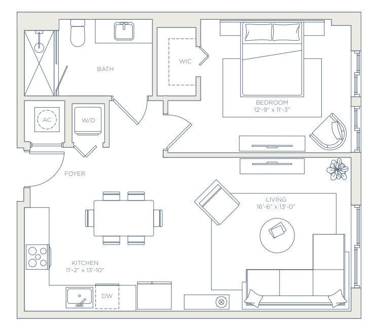 1 Bed, 1 Bath, 745 sq ftAvailable January 21, 2026Model Gallery