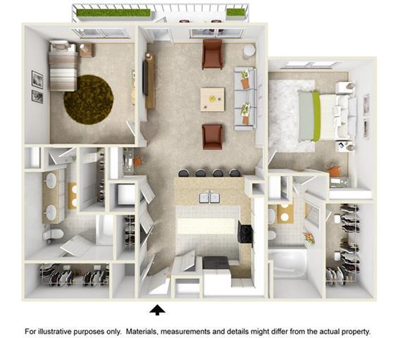 2 Beds, 2 Baths, 1106 sq ftAvailable NowCheapest 2 BedroomThis is the cheapest 2 Bedroom at this PropertyModel Gallery