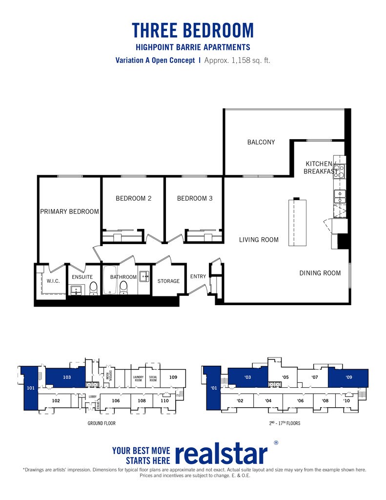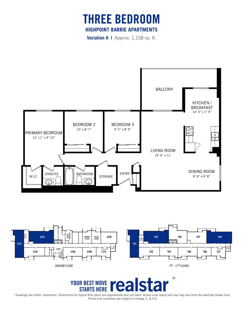Highpoint Barrie offers 1 to 3 Bedroom apartments starting from $1,995 and having 662–1,158 sq ft. Here is the current pricing and availability: