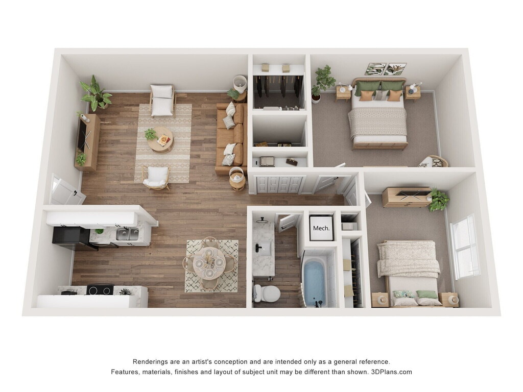 2 Beds, 2 Baths, 1000 sq ftAvailable NowModel Gallery
