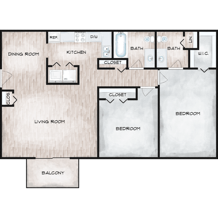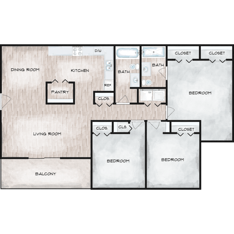 Apartment Model: 3 Bed 2 BathCall For Rates3 Bedroom, 2 Bath, 1330 sq ftUnavailable3 Bed 2 Bath - Floorplan 1