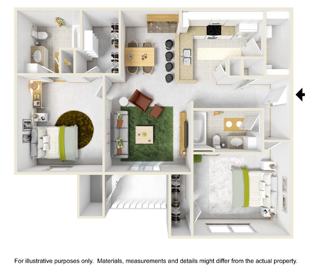 2 Beds, 2 Baths, 1020 sq ftModel Gallery