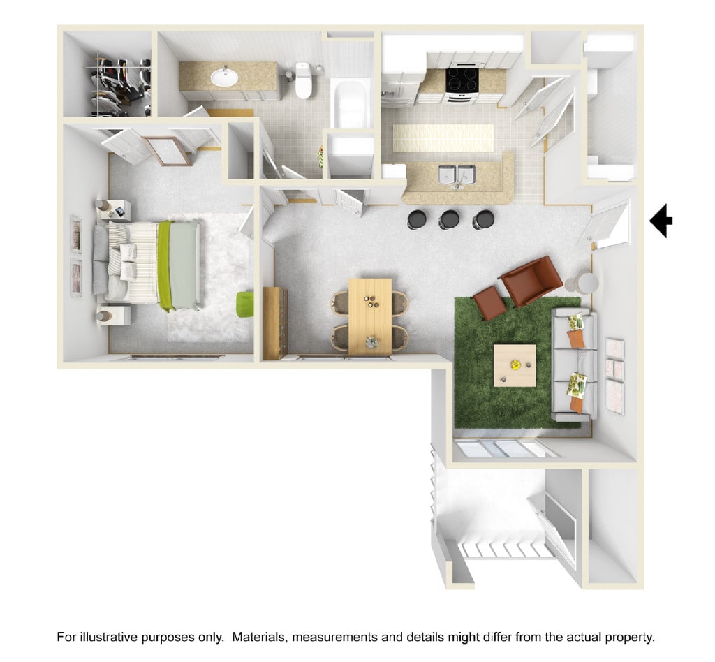 1 Bed, 1 Bath, 830 sq ftModel Gallery