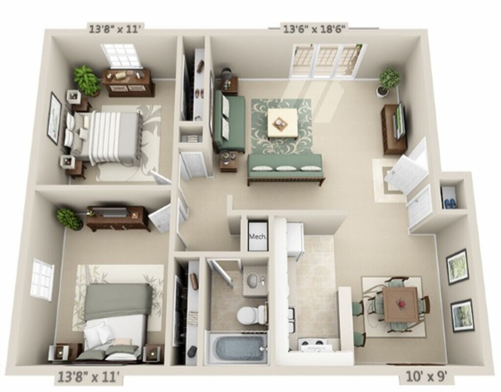 2 Beds, 1 Bath, 870 sq ftAvailability Details