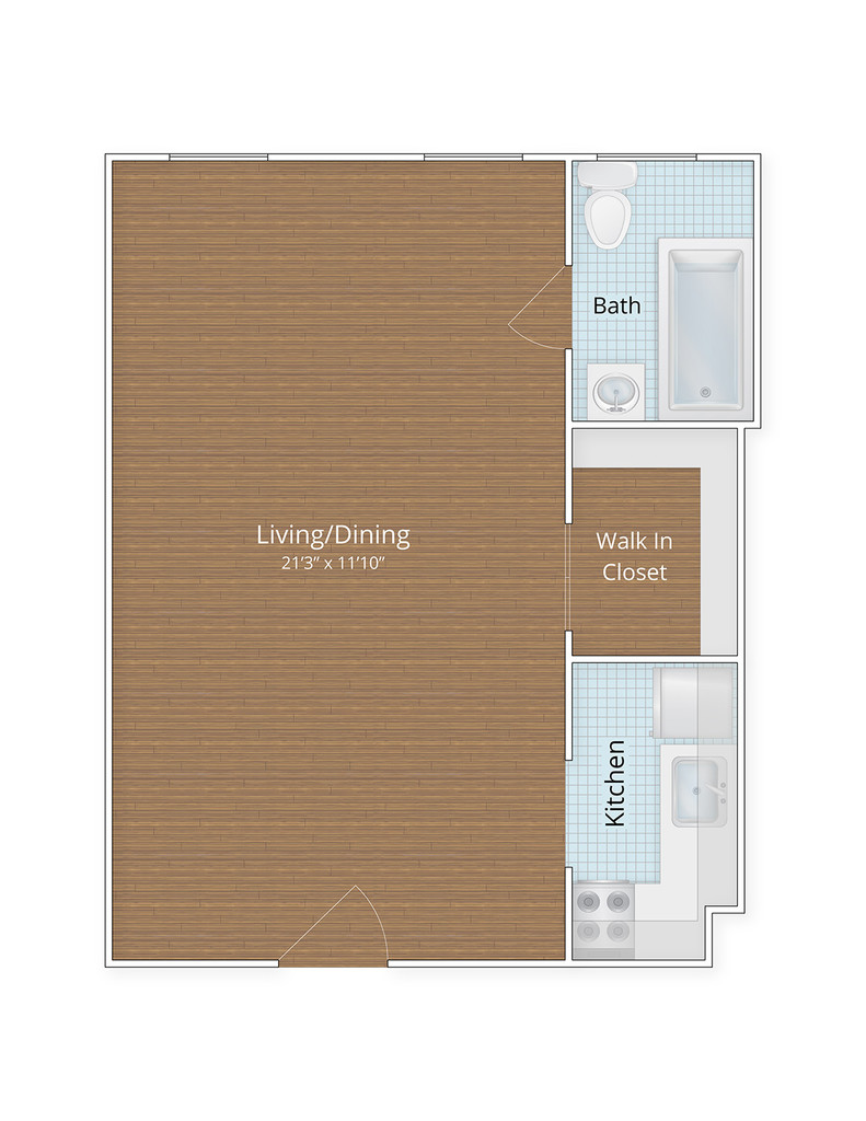Studio, 1 Bath, 311-375 sq ftAvailable NowModel Gallery