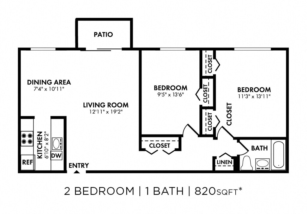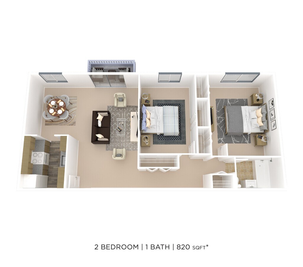2 Beds, 1 Bath, 820 sq ftAvailable NowModel Gallery