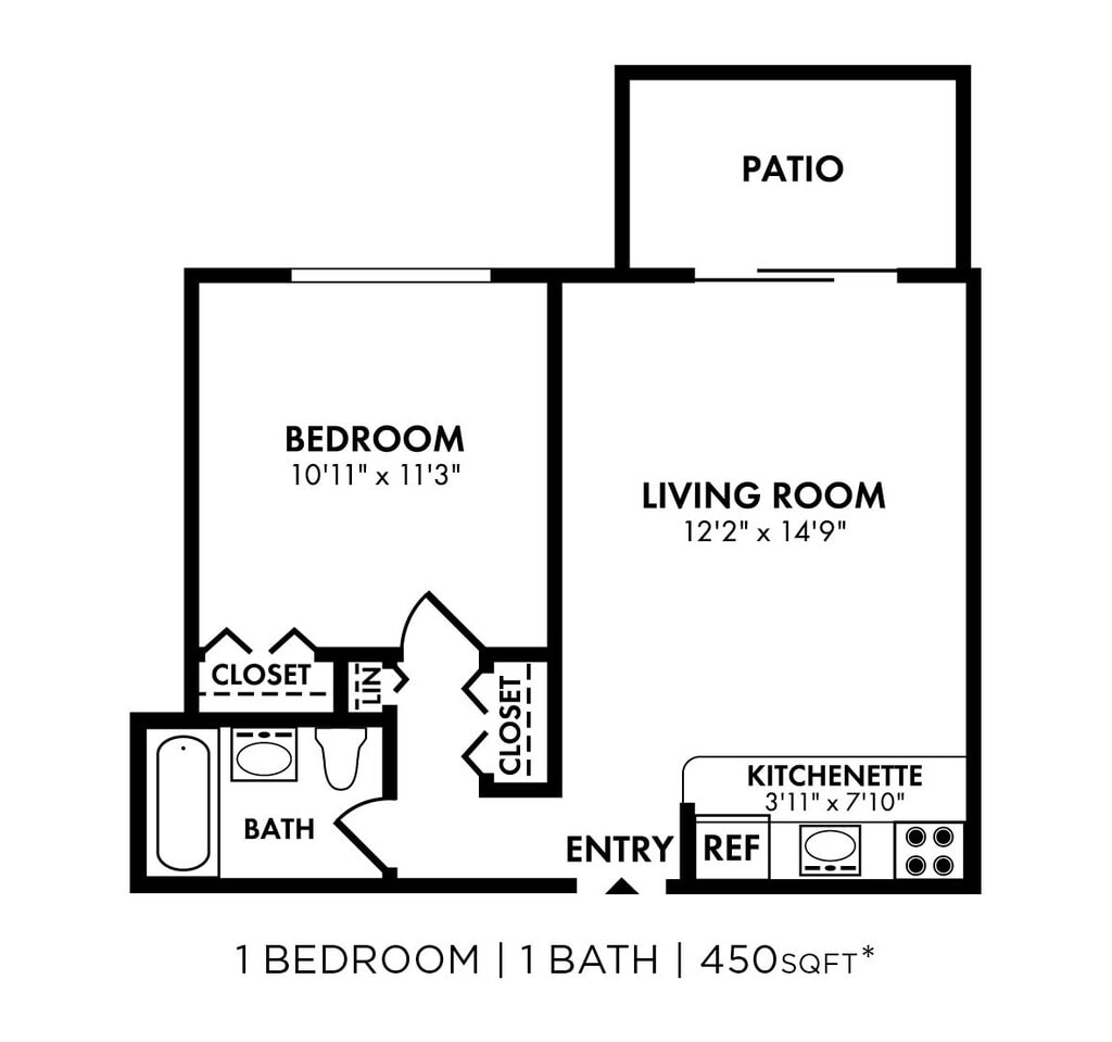 One Bedroom - 450 sqft - Floorplan 1 ![]()