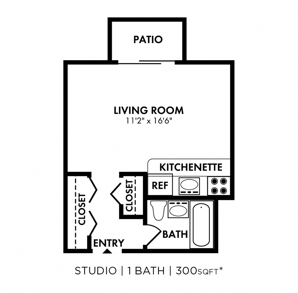 Apartment Model: Studio - 300 sqftFrom $1,325Studio, 1 Bath, 300 sq ftAvailable Now![]()