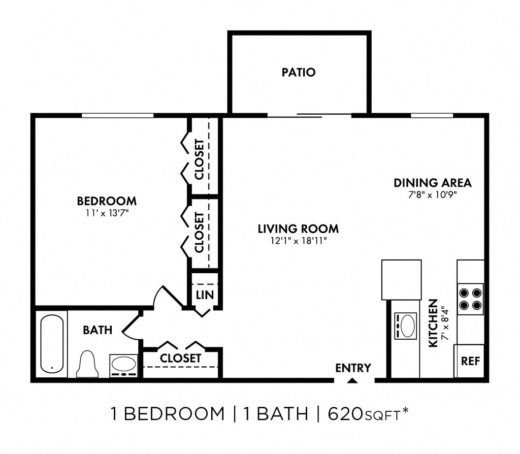 One Bedroom - 620 sqft - Floorplan 1 ![]()