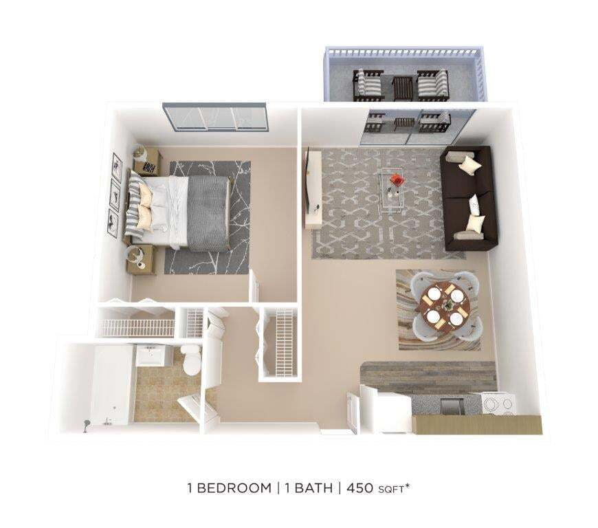 Apartment Model: One Bedroom - 450 sqftCall For Rates1 Bedroom, 1 Bath, 450 sq ftUnavailable![]()