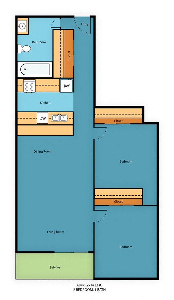 One Bedroom One Bathroom - Floorplan 14 2 Bedrooms