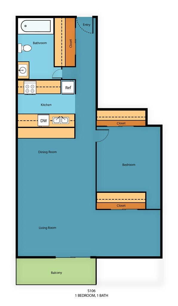 One Bedroom One Bathroom - Floorplan 13 ![]()