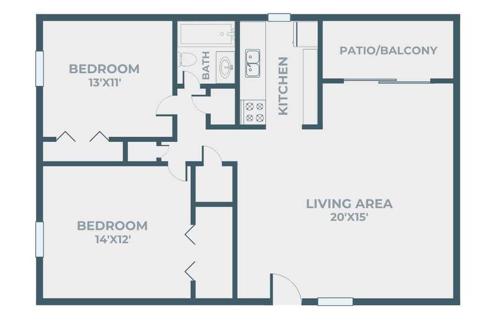 Apartment Model: 2 BedroomFrom $7952 Bedroom, 1 Bath, 924 sq ftAvailable Now![]()