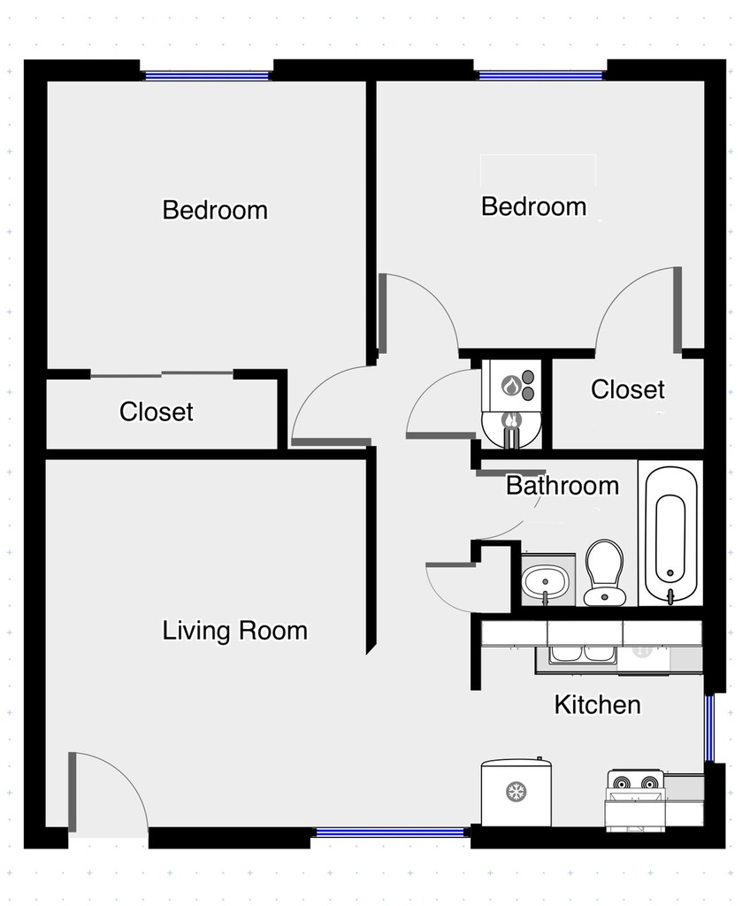 3 Bed / 1 Bath - Floorplan 10 Apartment Unit: 602Apartment Model: 3 Bed / 1 Bath$8503 Bedroom, 1 Bath, 860 sq ftAvailable Now