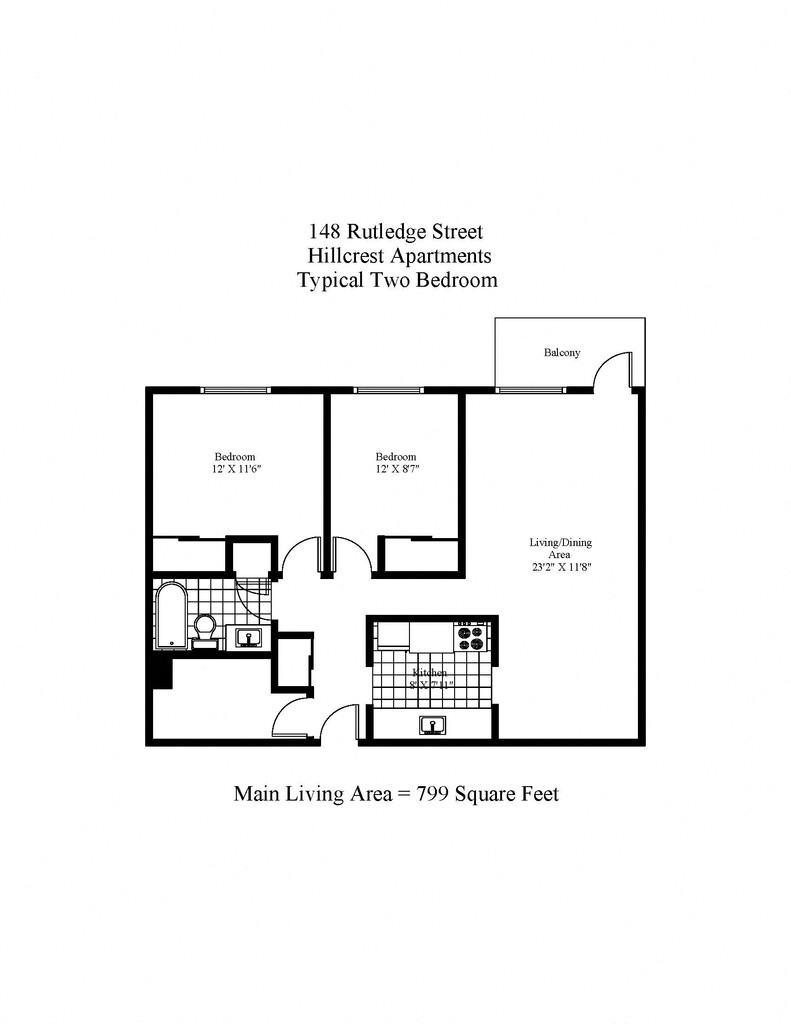 Two Bedroom+Balcony - Floorplan 1 Apartment Unit: 315Apartment Model: Two Bedroom+Balcony2 Bedroom, 1 Bath, 800 sq ftAvailable NowTwo bedroom with a View
