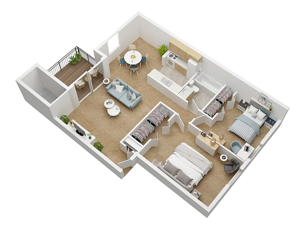 2 Beds, 1 Bath, 1032 sq ftModel Gallery