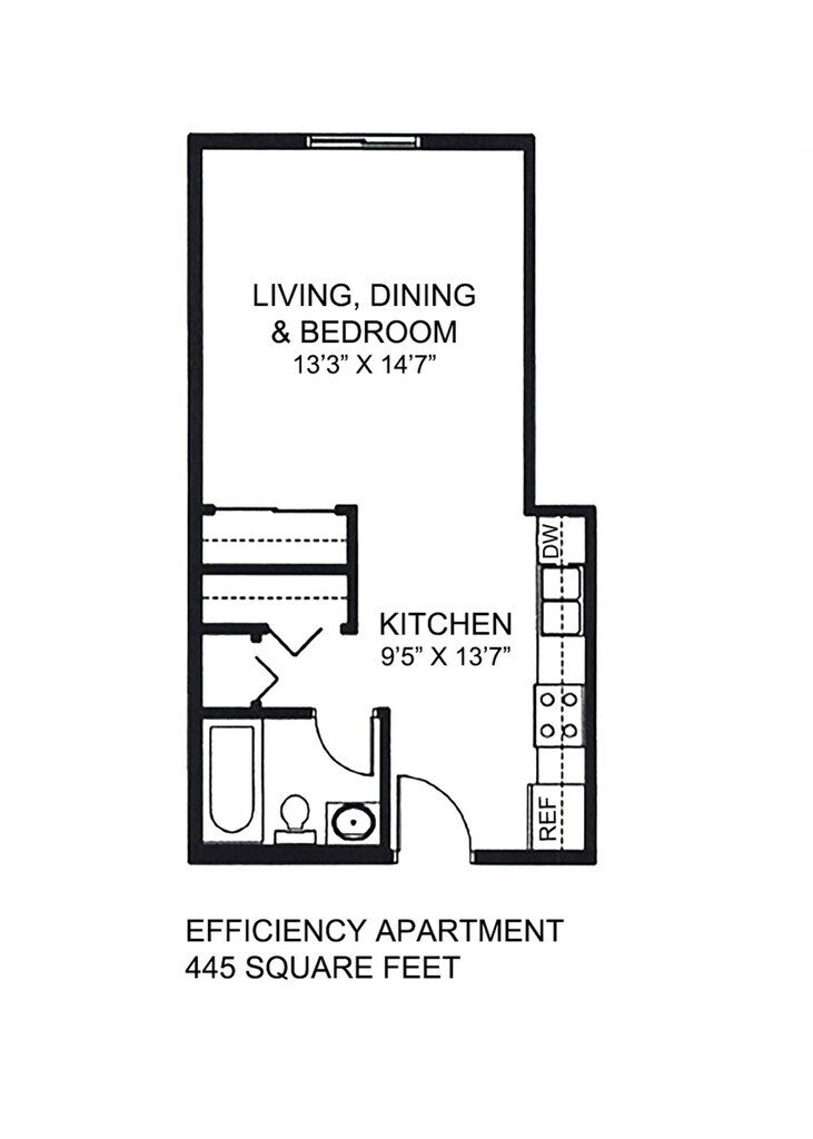 Apartment Model: Studio B$1,070Studio, 1 Bath, 445 sq ftAvailable November 10, 2025FloorplansPhotos![]()