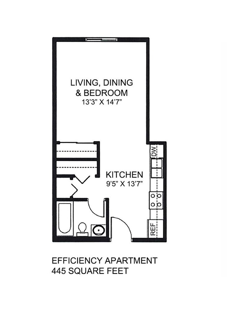 Studio B - Floorplan 2 Apartment Unit: 335Apartment Model: Studio B$1,070Studio, 1 Bath, 445 sq ftAvailable November 10, 2025![]()