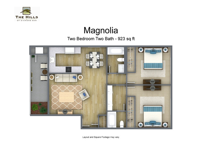 Apartment Model: Magnolia$2,8952 Bedroom, 2 Bath, 923 sq ftAvailable Now![]() - Magnolia - Floorplan 1 ![]() - Magnolia - Floorplan 2
