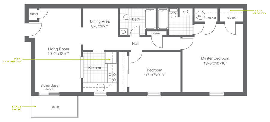 Apartment Model: 2 Bed | 1 Bath2 Bedroom, 1 Bath, 965 sq ftAvailable Now![]()