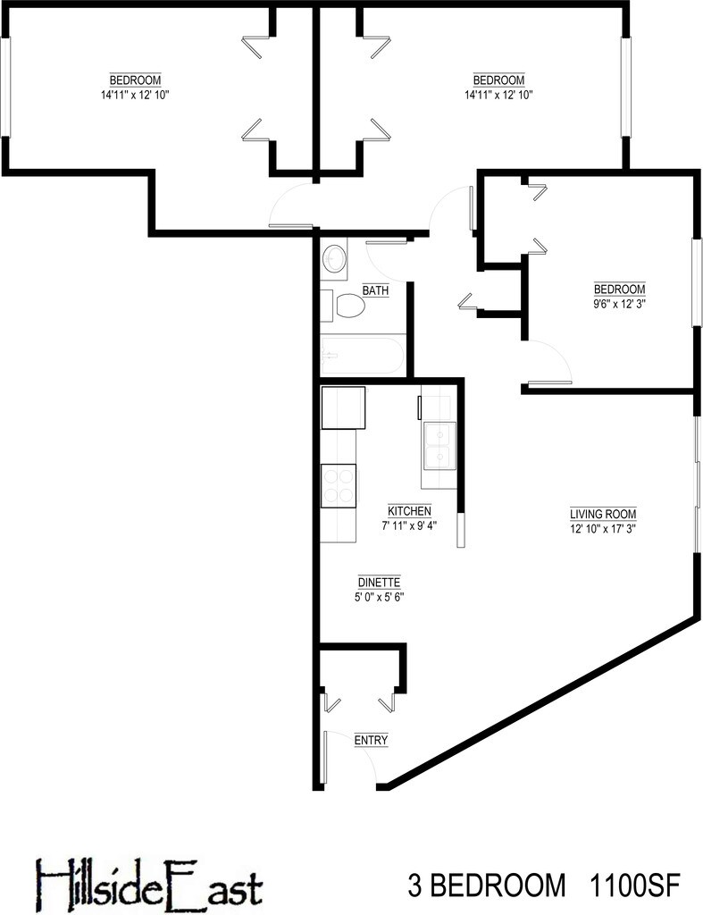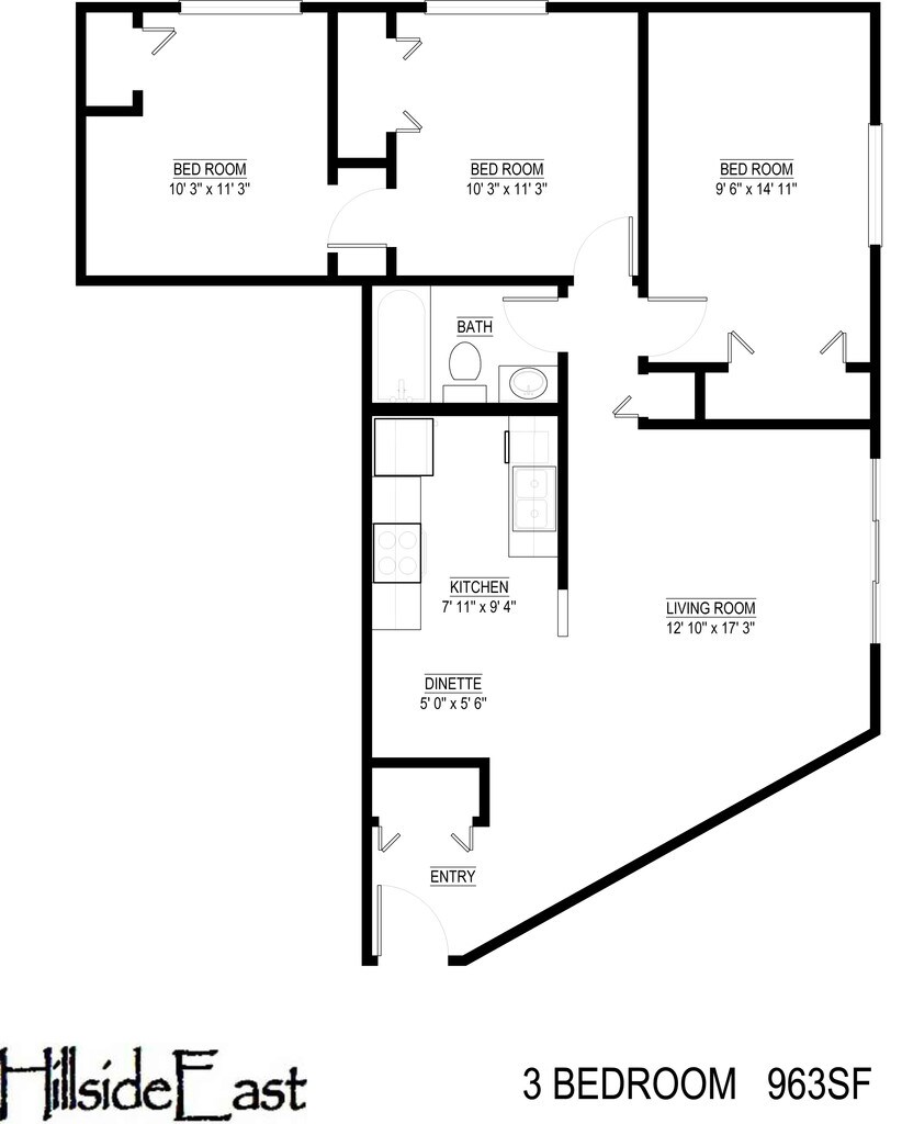 1 Bedroom to 3 Bedroom Apartments at Hillside East currently range from $1,385 to $1,425